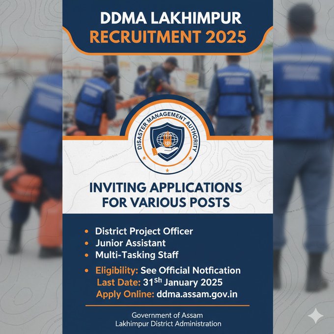 District Disaster Management Authority (DDMA), Lakhimpur has released an official advertisement for the recruitment of 1 Field Officer (Disaster Management) vacancy for the Revenue Circle on a contract basis