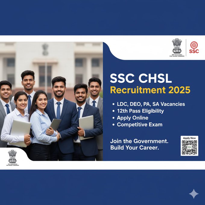 SSC CHSL Recruitment 2025: Apply SSC CHSL 2025 Recruitment Online Form. Are you looking for a job in SSC CHSL? If yes, then read this page. Because on this article we are providing you with details on SSC CHSL Recruitment 2025. SSC CHSL has released a notification for LDC / JSA and DEO / DEO. So, eligible candidates fill ssc chsl recruitment online apply 2025 Online Form for vacant positions. As per the notice, candidates may apply SSC CHSL Recruitment 2025 Form.